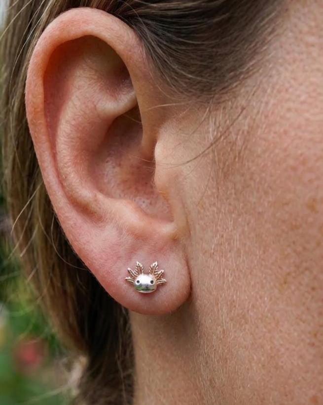 These earrings capture the charm of the axolotl, featuring intricate detailing and a delightful rose gold touch. Each stud showcases the endearing axolotl design, exuding a playful yet elegant vibe. Crafted with precision and care, these earrings are perfect for adding a touch of personality to any ensemble.