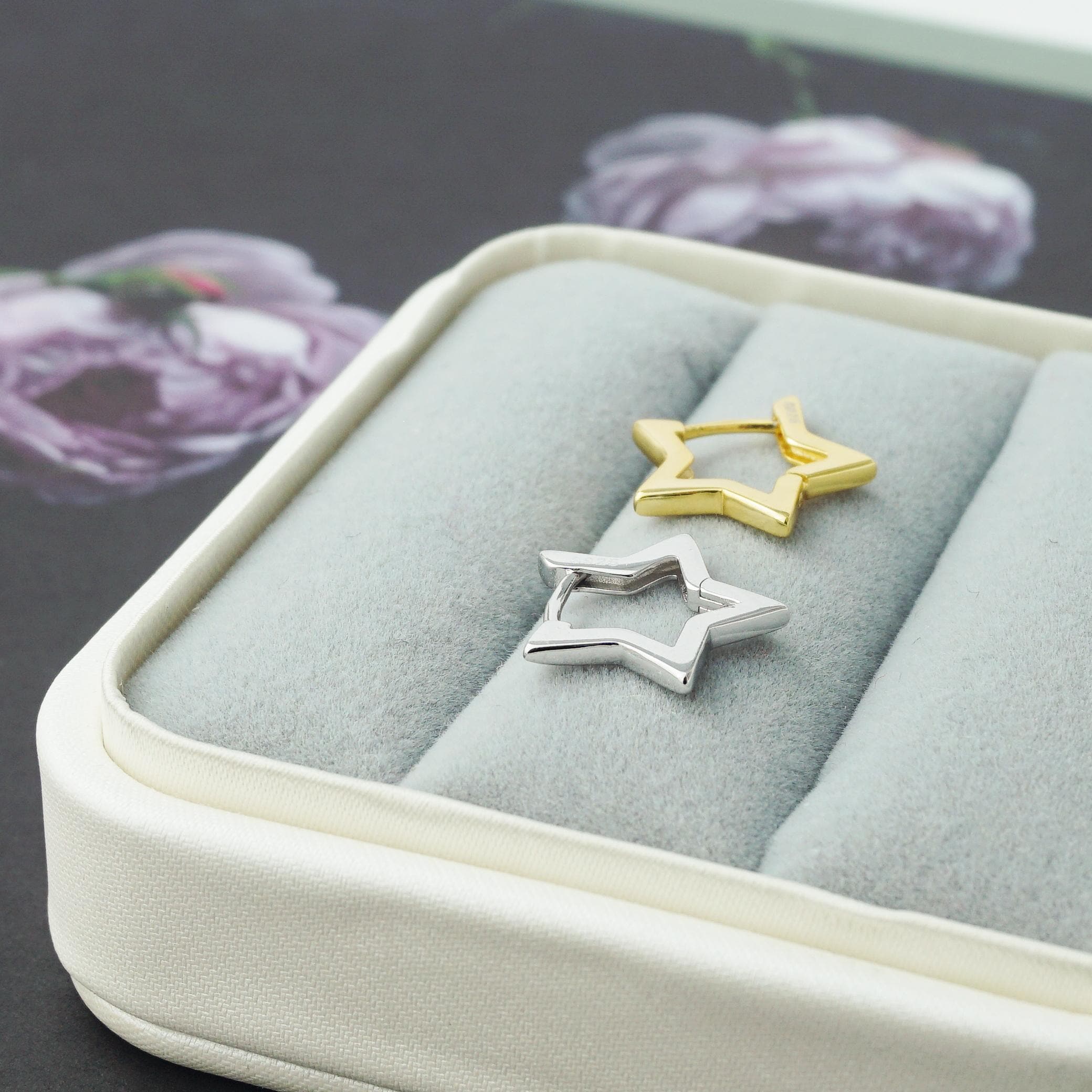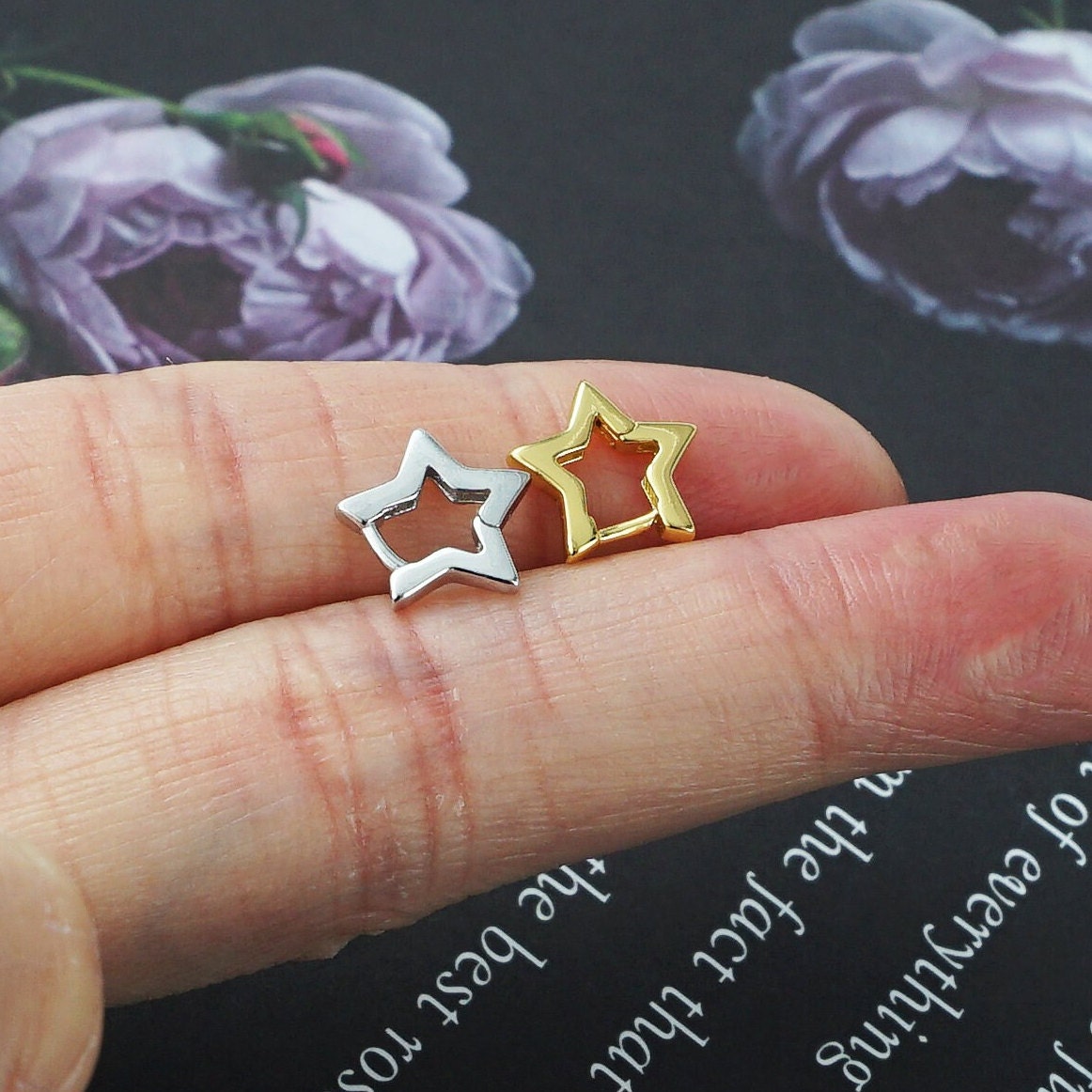 Illuminate your style with our captivating Star Huggie Hoop Earrings, available in silver or gold finish. Let the celestial beauty and