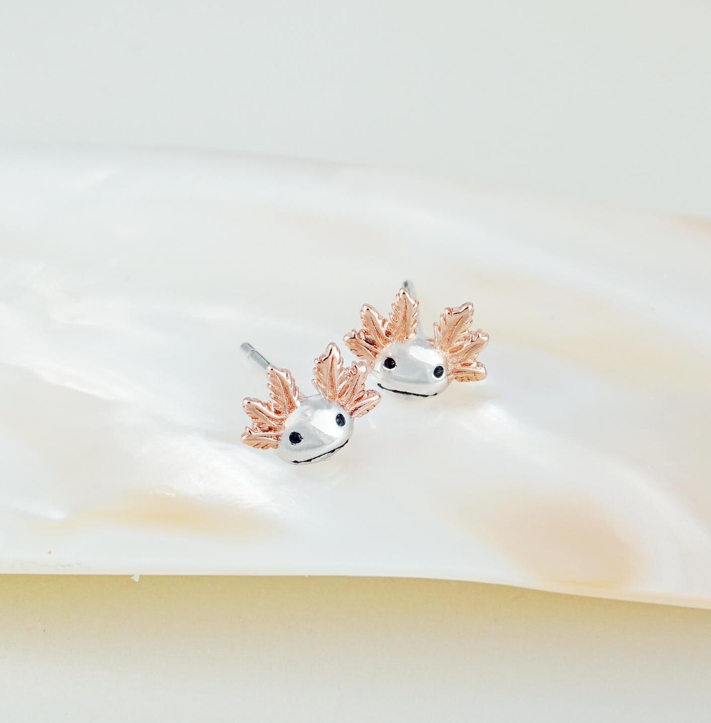 The combination of sterling silver and rose gold plating ensures durability and lasting shine, making these earrings a cherished addition to your jewelry collection. Embrace the enchanting allure of our Tiny Axolotl Stud Earrings and make a unique statement wherever you go. Order now and adorn yourself with these whimsical treasures that capture the spirit of the axolotl in stunning detail.