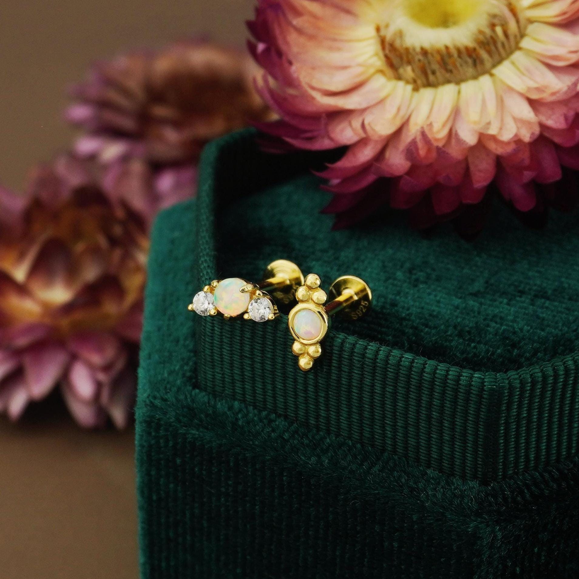 1pc Flat Screw Back Fire Opal Stud Earring in Gold Plated over Sterling Silver, Tiny Gem Delicate Stacking Earlobe Cartilage Tragus Piercing