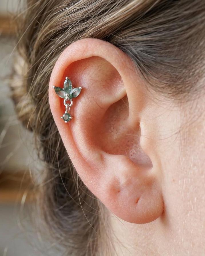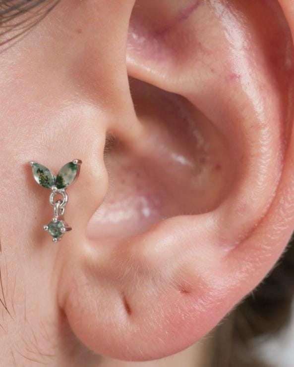 1pc Natural Green Moss Agate Flat Back Stud Earring in Sterling Silver/ Plated Gold, Dainty Double/ Triple Marquise Helix Tragus Lobe Pierce